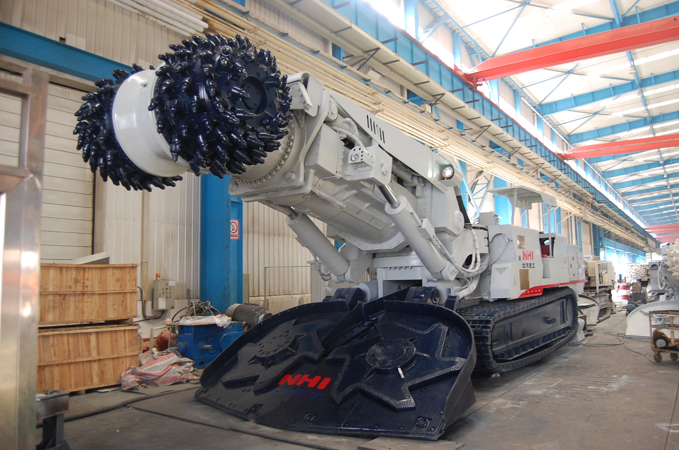 NHI isone of the earliest companies whichdesign and product boringmachine in China. NHI supply quality products to major domestic coal producers for many years. Now ithas formed aseries ofboring machinesuch asEBZ120, EBZ132, EBZ160A, EBZ160A (short), EBZ200, EBZ220, EBZ240, EBZ260, EBZ320, EBH360. In 2012, NHI developedtheEBH360horizontal axis boring machine which is a breakthrough in the structural design and manufacture. It solves the problem of cutting transmission and achieves the conversion between two speeds. It also make it possible which hydraulic and electrical control in the hydraulic system at the same time. In the electrical system, it achievesremotecontrol andprofile cuttingfunction. The technology is at a leading level in China.