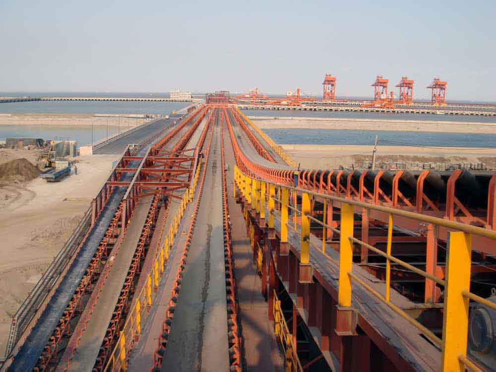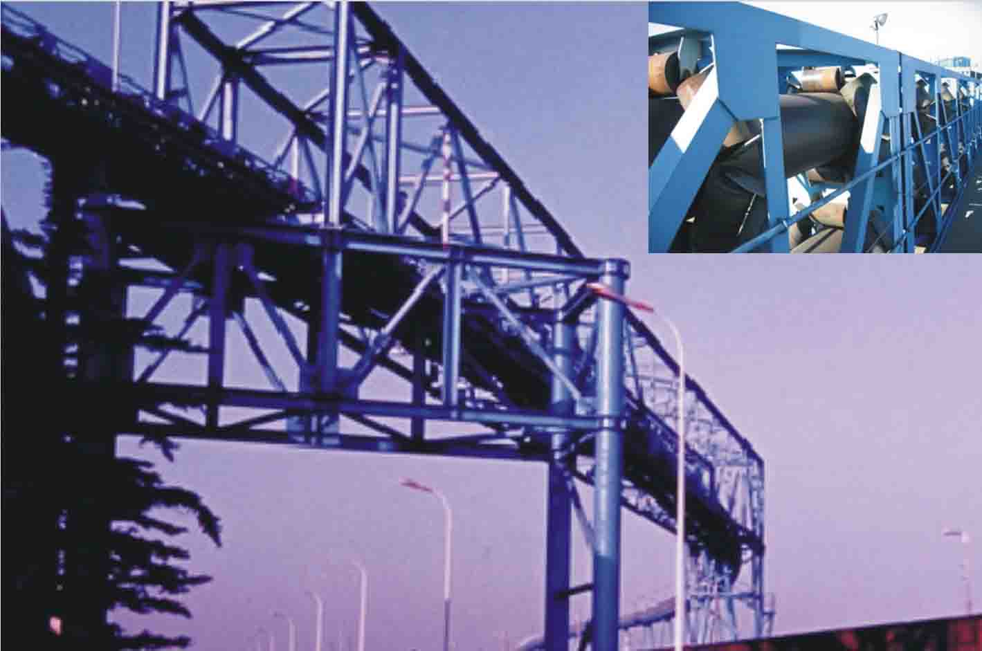 我公司所生產的帶式輸送機,首先是運行可靠,在許多需要連續運行的重要的生產單位,如發電廠煤的輸送,鋼鐵廠和水泥廠散狀物料的輸送,以及港口內船舶裝卸等均采用帶式輸送機。其特點動力消耗低,使用過程中阻力小,對貨物的磨損和破壞均小,生產效率高。不僅在煤廠、鋼鐵廠和礦廠運用輸送機,還在小型隧道內均可以使用,長度短則幾米,長可達10米以上,也可以架設在地面交通混亂和危險地區的上空。如在一點或多點受料.也可以向多點或幾個區段卸料,需要時,還能把各堆不同的物料進行混合。